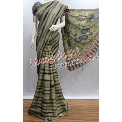 Mangalagiri Powerloom Semi Pattu Malabary Printed Saree (Cotton Warp +Semi Pattu Weaving) with Plain Border. Saree comes with Unstitched Blouse Piece.