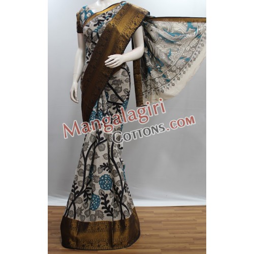 Kalamkari Silk Kanchi Saree. Saree comes with Unstitched Blouse Piece.