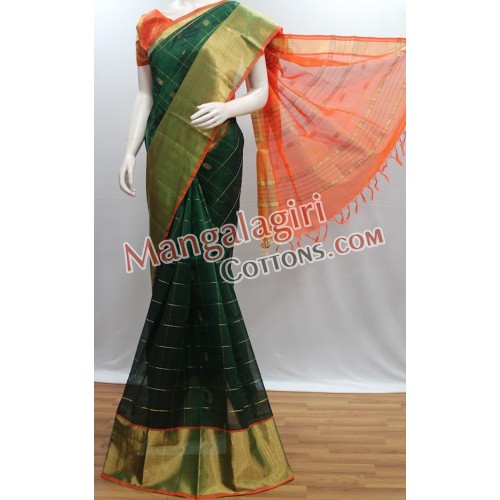Mangalagiri Handloom Pure Pattu Check Saree (Cotton Warp + Pure Pattu weaving) with Gold Zari Border. Saree comes with Unstitched Blouse Piece.