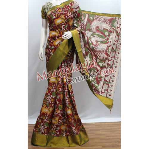 Kalamkari Silk Saree. Saree comes with Unstitched Blouse Piece.