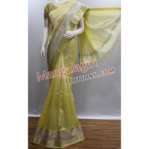 Mangalagiri Handloom Semi Pattu Saree (Cotton Warp + Semi Pattu Weaving) with Silver Zari Border. Saree comes with Unstitched Blouse Piece.