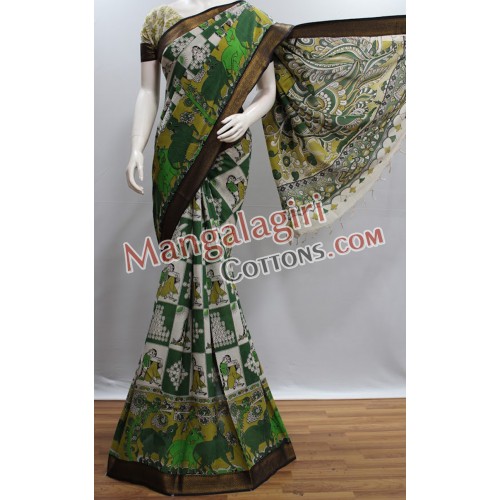 Kalamkari Silk Saree With Nizam Border. Saree comes with Unstitched Blouse Piece.