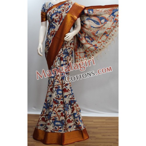 Kalamkari Silk Saree. Saree comes with Unstitched Blouse Piece.