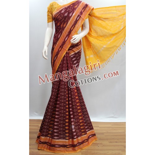 Mangalagiri Powerloom Semi Pattu Ikkat Mercerized Saree (Cotton Warp +Semi Pattu Weaving) with Silver Zari Border. Saree comes with Unstitched Blouse Piece.