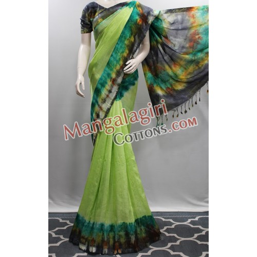 Mangalagiri Handloom Semi Pattu Plain Shibori Saree (Cotton Warp + Semi Pattu Weaving) with Plain Border. Saree comes with Unstitched Blouse Piece.
