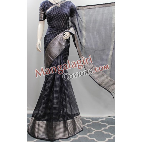 Mangalagiri Handloom Semi Pattu Check Saree (Cotton Warp + Semi Pattu Weaving) with Silver Zari Border. Saree comes with Unstitched Blouse Piece.