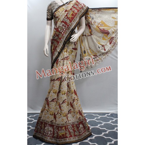 Chanderi Kalamkari Print Saree with Zari Boarder. Saree comes with Unstitched Blouse Piece.