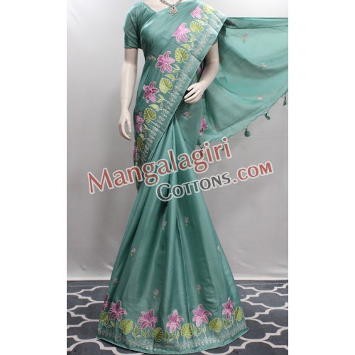 Mangalagiri Powerloom Soft Silk Work Saree (Cotton Warp +Semi Pattu Weaving) with Silver Thread Border. Saree comes with Unstitched Blouse Piece.