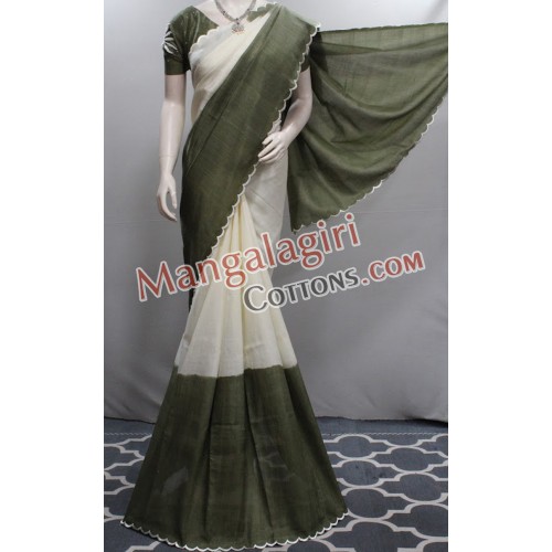 Mangalagiri Handloom Semi Pattu Tie & Die Shibori Saree (Cotton Warp + Semi Pattu Weaving) with Cut Work Border. Saree comes with Unstitched Blouse Piece.