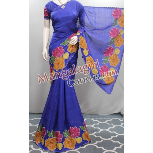 Mangalagiri Handloom Semi Pattu Applique Saree (Cotton Warp + Semi Pattu Weaving) with Cut Work Border. Saree comes with Unstitched Blouse Piece.