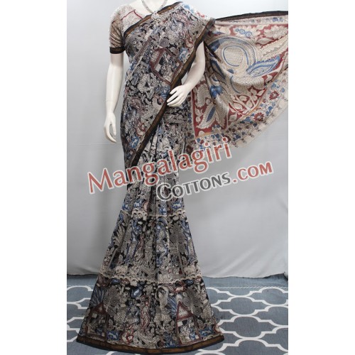 Chanderi Kalamkari Print Saree with Zari Boarder. Saree comes with Unstitched Blouse Piece.