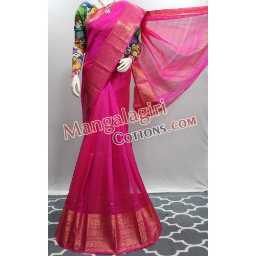 Mangalagiri Handloom Pure Pattu Saree (Cotton Warp + Pure Pattu weaving) with Gold Zari Border. Saree comes with Running Blouse and Extra 1meter Hand Print PenKalamkari Blouse.