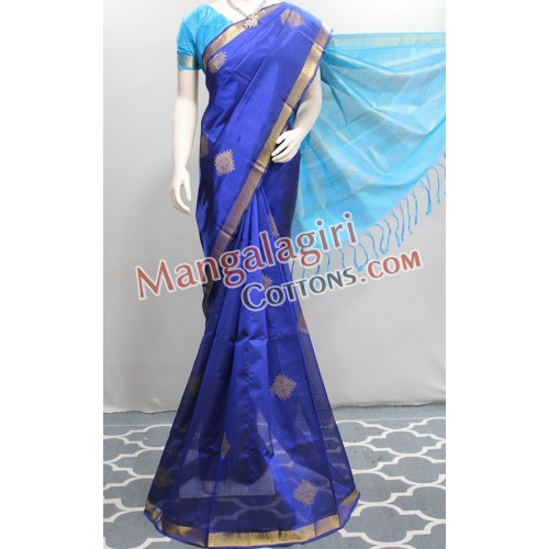 Mangalagiri Handloom Pure Pattu Butta Saree (Cotton Warp + Pure Pattu weaving) with Gold Zari Border. Saree comes with Unstitched Blouse Piece.