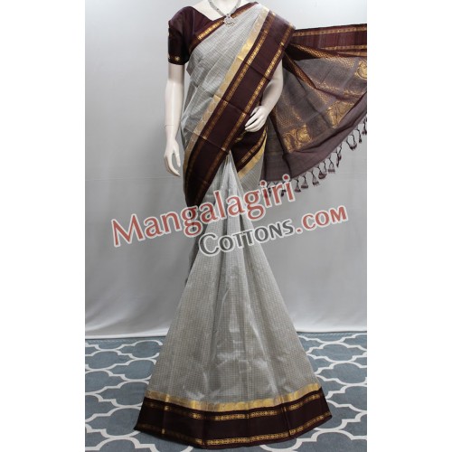 Mangalagiri Handloom Pure Kanchi Pattu Check Saree (Cotton Warp + Pure Pattu weaving) with Gold Zari Border. Saree comes with Unstitched Blouse Piece.