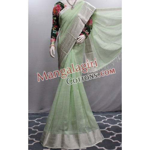 Mangalagiri Handloom Semi Pattu Kanchi Saree (Cotton Warp + Semi Pattu Weaving) with Silver Zari Border. Saree comes with Running Blouse and Extra 1meter Digital Print Blouse.