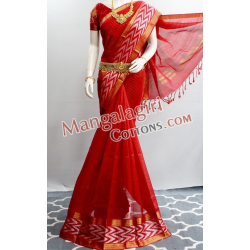 Mangalagiri Handloom Pure Pattu Saree (Cotton Warp + Pure Pattu weaving) with Gold Zari Border. Saree comes with Unstitched Blouse Piece.