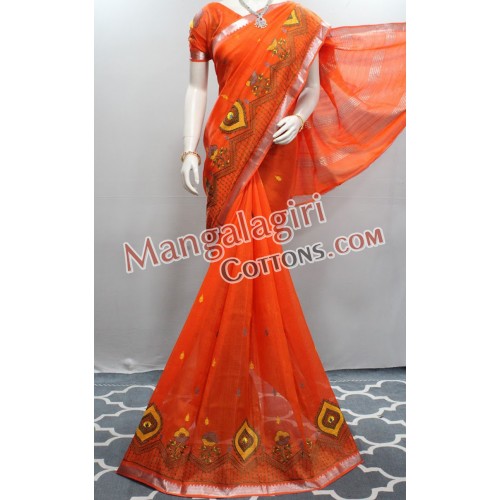 Mangalagiri Handloom Semi Pattu Work Saree (Cotton Warp + Semi Pattu Weaving) with Silver Zari Border. Saree comes with Unstitched Blouse Piece.