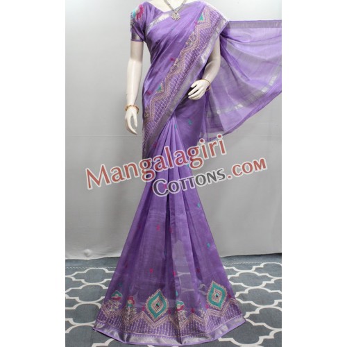 Mangalagiri Handloom Semi Pattu Work Saree (Cotton Warp + Semi Pattu Weaving) with Silver Zari Border. Saree comes with Unstitched Blouse Piece.