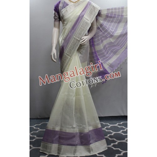 Mangalagiri Handloom Semi Pattu Gap Border Saree (Cotton Warp + Semi Pattu Weaving) with Silver Zari Border. Saree comes with Unstitched Blouse Piece.