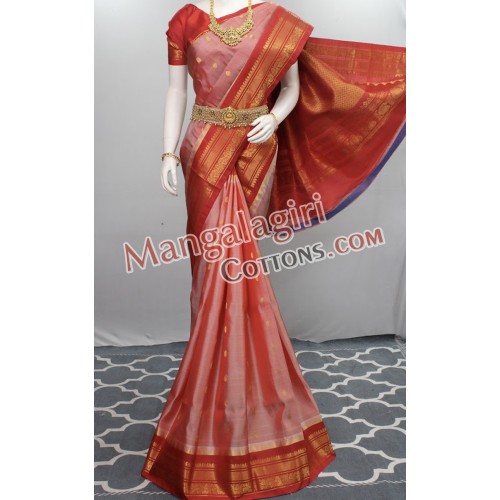 Mangalagiri Handloom Pure Pattu Saree (Pattu Warp + Pure Pattu weaving) with Gold Zari Border. Saree comes with Unstitched Blouse Piece.