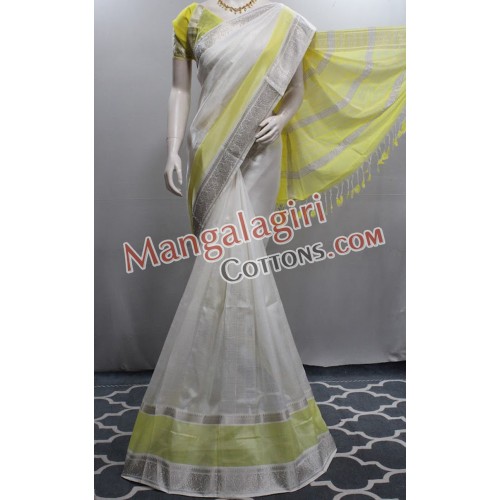 Mangalagiri Handloom Semi Pattu Gap Border Saree (Cotton Warp + Semi Pattu Weaving) with Silver Zari Border. Saree comes with Unstitched Blouse Piece.