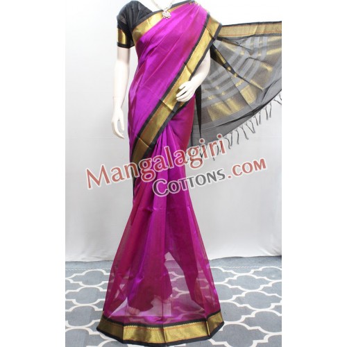 Mangalagiri Handloom Pure Pattu Saree (Cotton Warp + Pure Pattu weaving) with Gold Zari Border. Saree comes with Unstitched Blouse Piece.