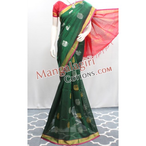 Mangalagiri Handloom Pure Pattu Khadhi Anchu Butta Saree (Cotton Warp + Pure Pattu weaving) with Gold Zari Border. Saree comes with Unstitched Blouse Piece.