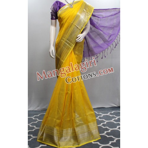 Mangalagiri Handloom Semi Pattu Saree (Cotton Warp + Semi Pattu Weaving) with Silver Zari Border. Saree comes with Unstitched Blouse Piece.