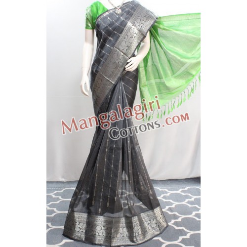 Mangalagiri Handloom Semi Pattu Butta Saree (Cotton Warp + Semi Pattu Weaving) with Silver Zari Border. Saree comes with Unstitched Blouse Piece.