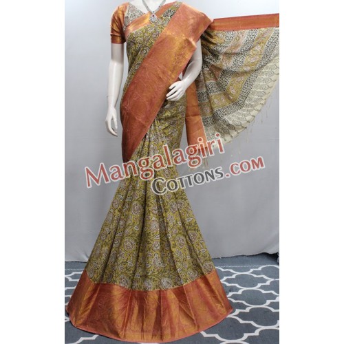 Kalamkari Hand Block Kanchi Border Silk Saree. Saree comes with Unstitched Blouse Piece.