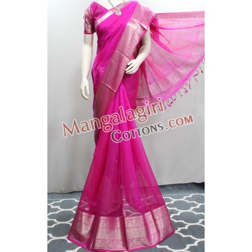 Mangalagiri Handloom Pure Pattu Kanchi Saree (Cotton Warp + Pure Pattu weaving) with Silver Zari Border. Saree comes with Unstitched Blouse Piece.