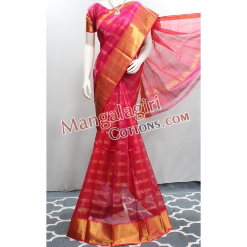 Mangalagiri Handloom Pure Pattu Saree (Cotton Warp + Pure Pattu weaving) with Gold Zari Border. Saree comes with Unstitched Blouse Piece.