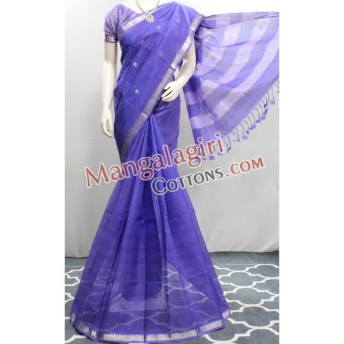 Mangalagiri Handloom Semi Pattu Butta Saree (Cotton Warp + Semi Pattu Weaving) with Silver Zari Border. Saree comes with Unstitched Blouse Piece.