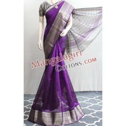 Mangalagiri Handloom Pure Pattu Kanchi Saree (Cotton Warp + Pure Pattu weaving) with Silver Zari Border. Saree comes with Unstitched Blouse Piece.