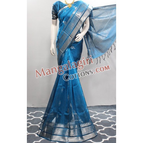 Mangalagiri Handloom Semi Pattu Kanchi Butta Saree (Cotton Warp + Semi Pattu Weaving) with Silver Zari Border. Saree comes with Unstitched Blouse Piece.
