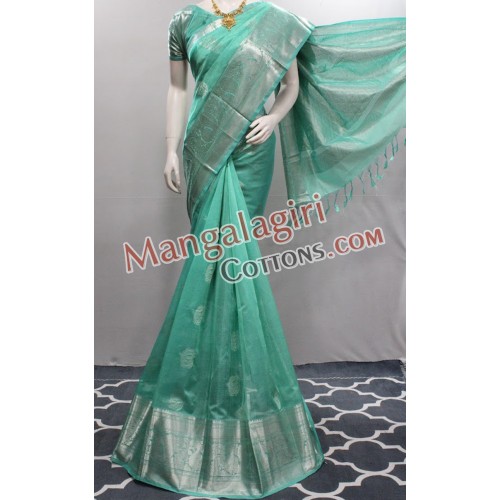 Mangalagiri Handloom Semi Pattu Butta Saree (Cotton Warp + Semi Pattu Weaving) with Silver Zari Border. Saree comes with Unstitched Blouse Piece.