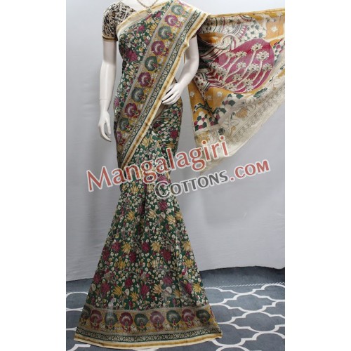 Chandhari Kalamkari Print Saree with Zari Boarder. Saree comes with Unstitched Blouse Piece.