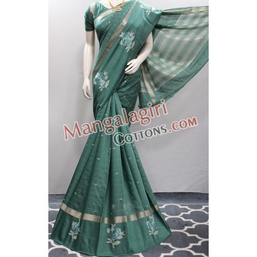 Mangalagiri Powerloom Malabary Silk Saree (Cotton Warp +Semi Pattu Weaving) with Plain Border. Saree comes with Unstitched Blouse Piece.