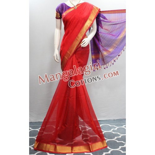 Mangalagiri Handloom Pure Pattu Saree (Cotton Warp + Pure Pattu weaving) with Gold Zari Border. Saree comes with Unstitched Blouse Piece.