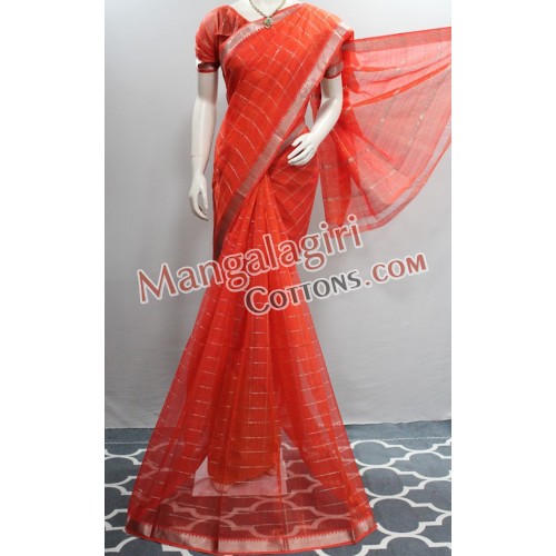 Mangalagiri Handloom Pure Pattu Checks Saree (Cotton Warp + Pure Pattu weaving) with Silver Zari Border. Saree comes with Unstitched Blouse Piece.