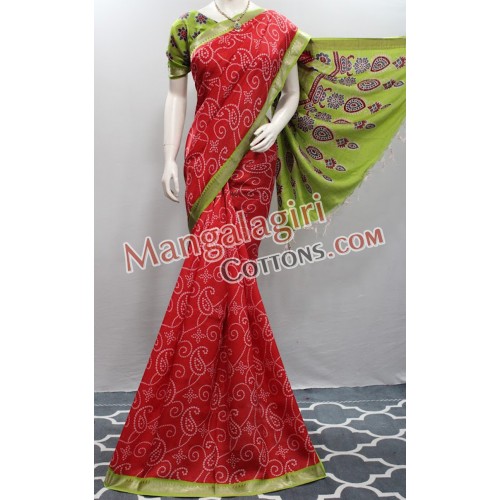 Mangalagiri Powerloom Semi Pattu Digital Printed Saree (Cotton Warp +Semi Pattu Weaving) with Silver Zari Border. Saree comes with Unstitched Blouse Piece.