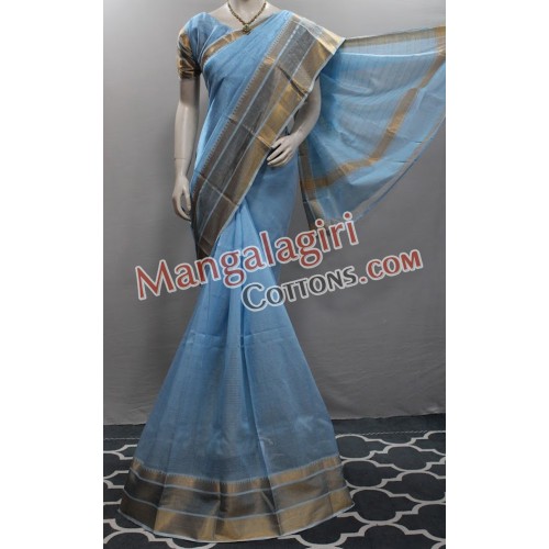 Mangalagiri Handloom Semi Pattu Saree (Cotton Warp + Semi Pattu Weaving) with Gold Zari Border. Saree comes with Unstitched Blouse Piece.