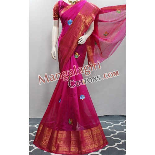 Mangalagiri Handloom Pure Pattu Tanjore Hand Printed Saree (Cotton Warp + Pure Pattu weaving) with Gold Zari Border. Saree comes with Unstitched Blouse Piece.