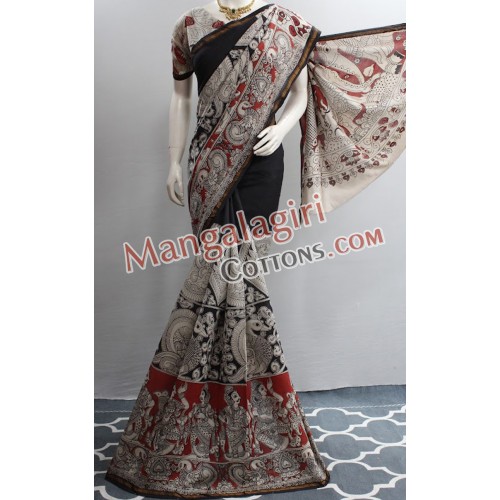 Chanderi Kalamkari Print Saree with Zari Boarder. Saree comes with Unstitched Blouse Piece.